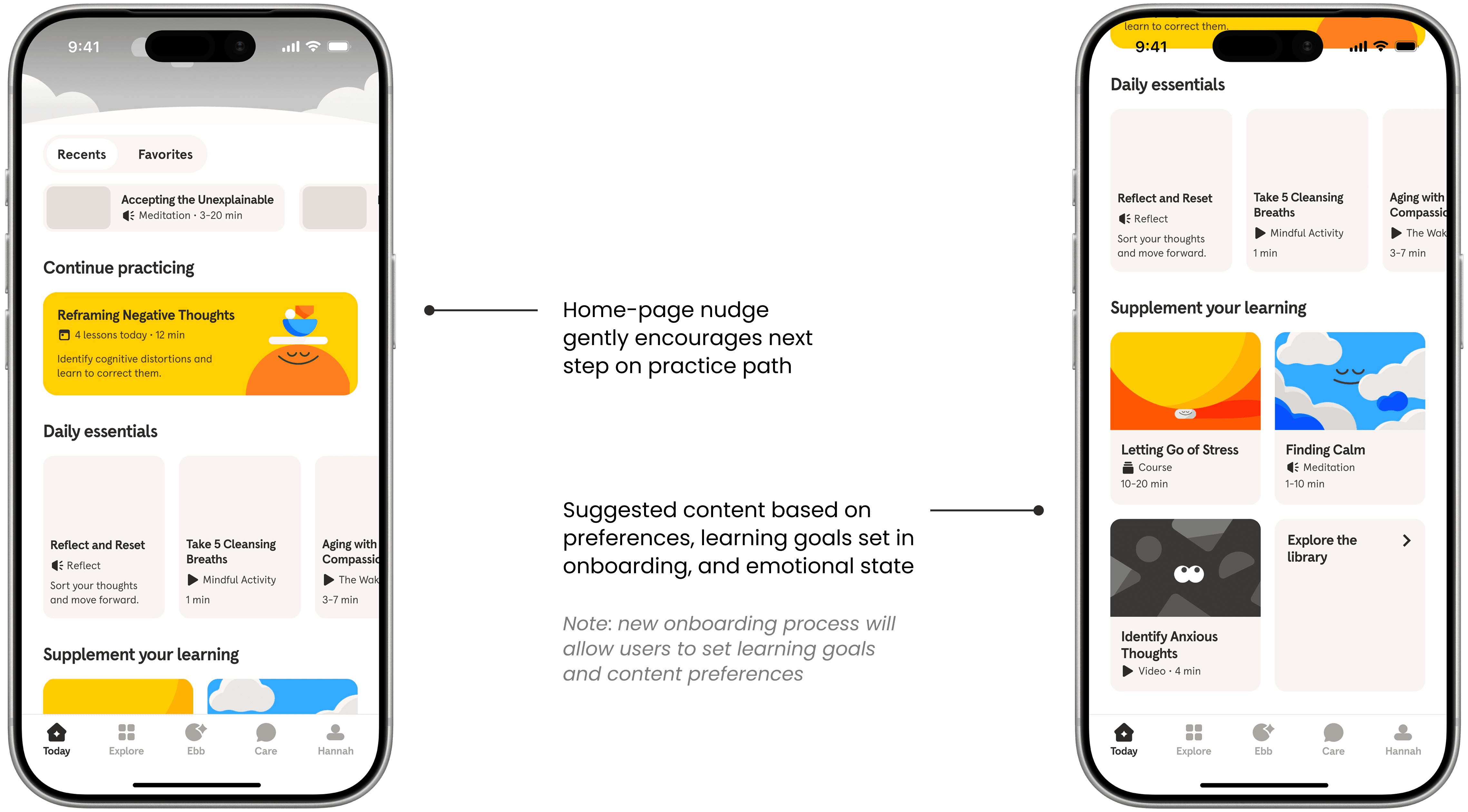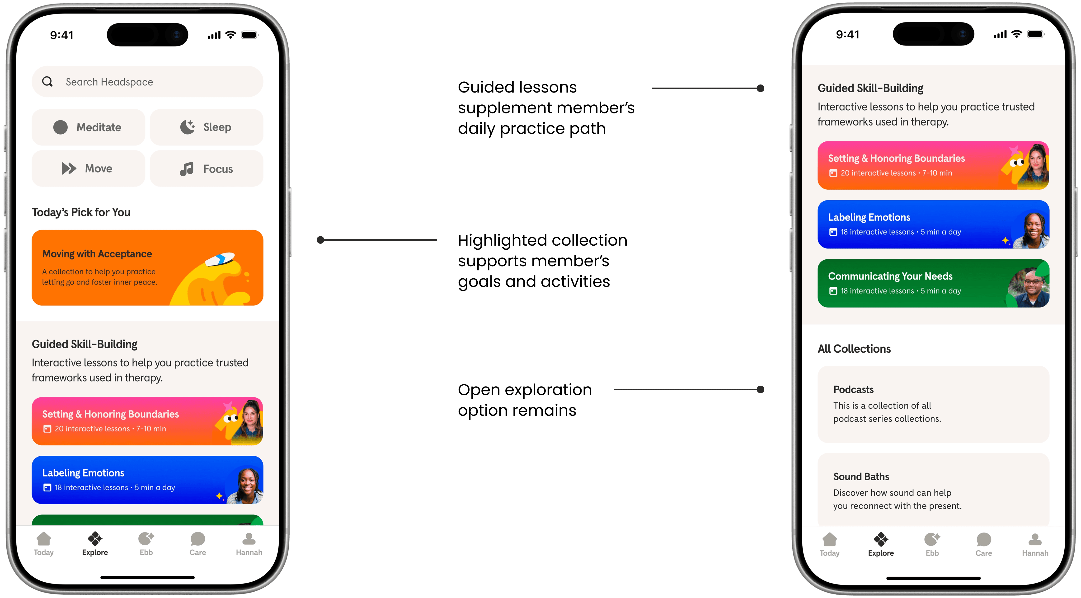 As a designer interested in mental health education and behavior change, I was curious where Headspace could evolve next, building upon its trusted platform to help people move from learning about skills to practicing and applying them.